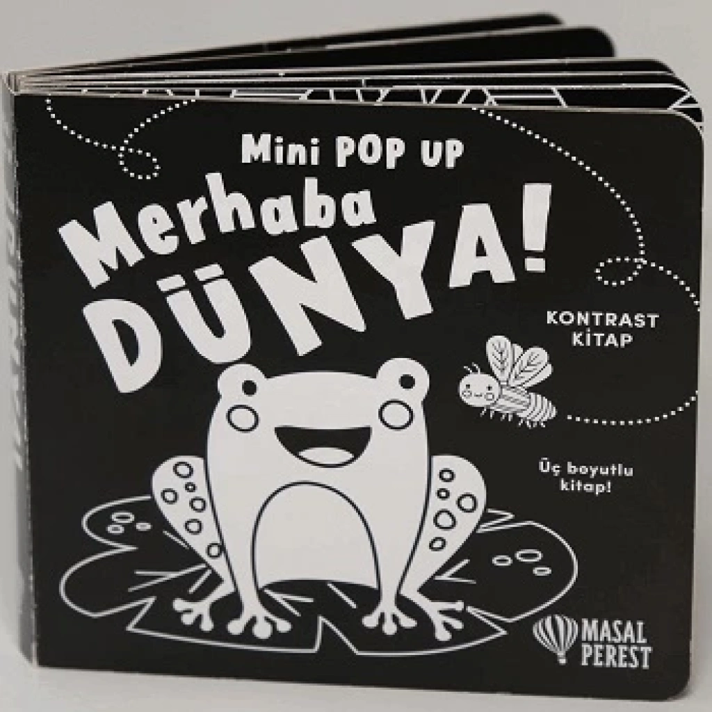 Sevimli hayvanlar canlanıp sana merhaba demek için sabırsızlanıyor. Sevimli kelebekten komik kurbağalara kadar çeşitli hayvanlarla tanışmaya ne dersin? Öyleyse kitabı aç ve bu tatlı hayvanları keşfet! Her sayfada hayvan pop-up’ları seni bekliyor! Masalperest’in sevilen Mini POP-UP serisi, bebeklerin görsel algısını geliştirmeye yardımcı olacak "Merhaba Dünya" kitabıyla genişliyor! Siyah-beyaz yüksek kontrastlı tasarımıyla bebeklerin ilgisini çekecek bu özel kitap, üç boyutlu sürprizleriyle minik okuyuculara keyifli bir deneyim sunuyor. Yeni doğan bebeklerin görsel gelişimini desteklemek için özel olarak tasarlanan "Merhaba Dünya", güçlü kontrast renkleri ve sevimli hayvan figürleriyle dikkat çekiyor. Pop-up özelliği sayesinde bebeklerin keşfetme ve dokunma duyularını harekete geçiren bu kitap, erken yaşta kitap sevgisi kazandırmak için harika bir başlangıç sunuyor.